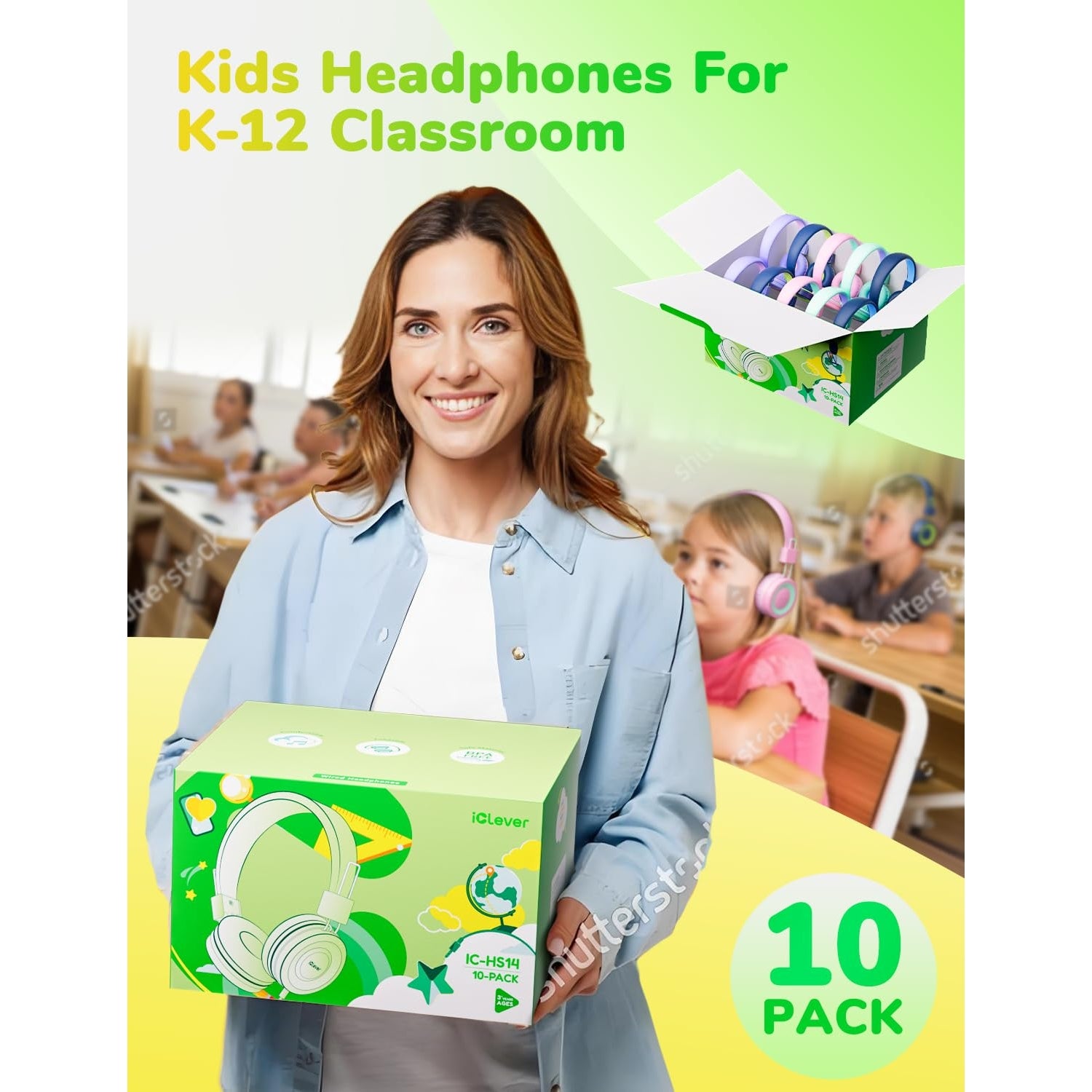 iClever Kids Wired Headphones HS14 Bulk 10-Pack